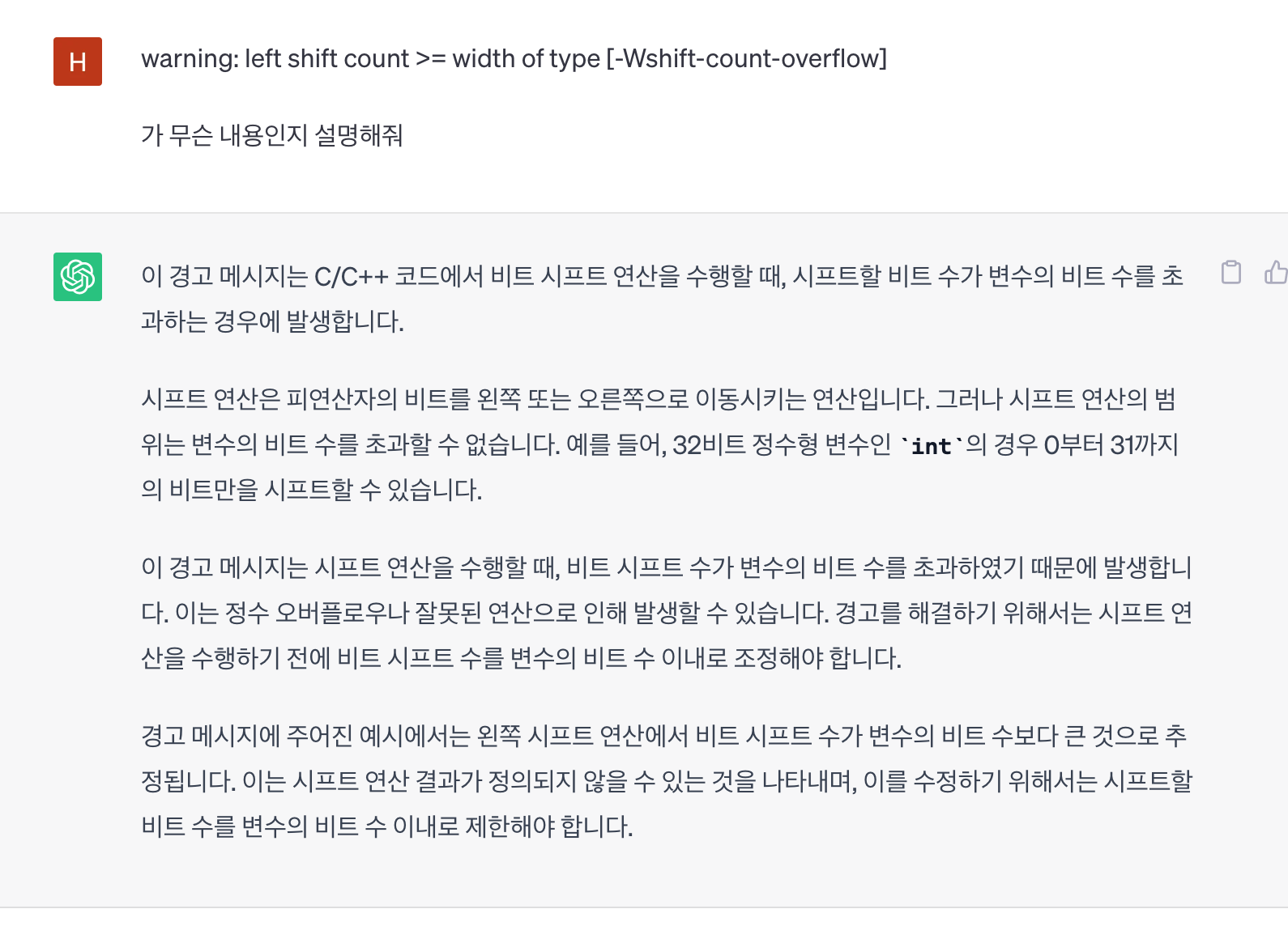left shitf count >= width of type [-Wshift-count-overflow] 라는 내용을 볼 수 있었다.