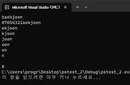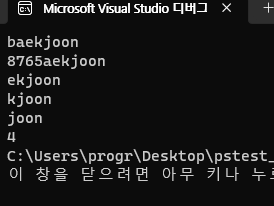 이렇게 수정해서, 처음 받아들인 baekjoon이라는 글자의 갯수만큼의 값을 int len_st에 복사해서 넣어주고,