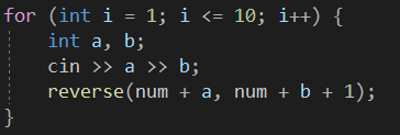 그리고 이것도 결국에는 reverse(반복자,반복자) 형태로 받는 것이기 때문에, 가장 처음 위치부터 num의 0번째 인자부터