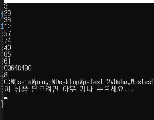 여기서 첫번재 cout에 작성한 코드에서 *을 제외하고 프로그램을 실행시킨뒤 입력값을 넣어보면