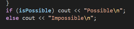 내가 보기에는 Impossible , Possible 로만 출력하라고 했지, 지속적으로 줄을 내리라고 얘기하지는 않고있는데,