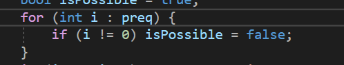 이렇게 처리하면서 결과적으로 isPossible이 마지막에 어떻게 되어있는지에 따라서 경우가 참인지 거짓인지 갈라보려고 하는것을 알 수 있다.