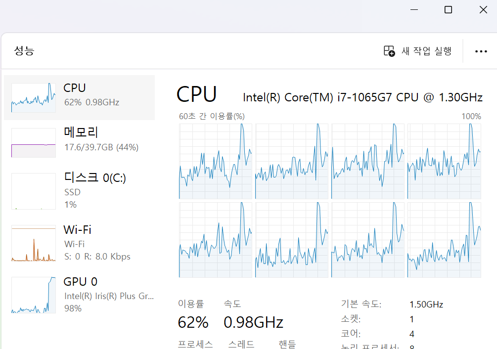 최근 유니티 프로젝트를 여러개 켜서 작업할때, cpu의 클럭 스피드가 지나치게 줄어드는 현상을 목격했다.