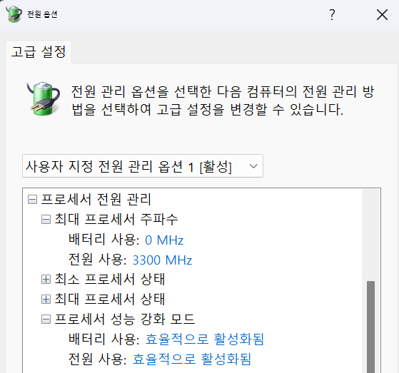 해당 현상에 대해서 최근까지는 cpu 연산을 하면서 온도가 올라가서 Tjunction max에 도달해서 쓰로틀링을 걸어서 그러한 클럭스피드 저하 현상이 발생하는것이라 생각했었고, 그에 대한 경감 방향으로 선택한것이 전력 설정 제한 옵션을 이용한 최대 클럭 제한과 프로세서 성능 강화 모드 변경을 통한 부스트 모드 사용 컨트롤 조정이었다.