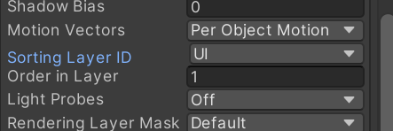 팝업창을 구성하는 UI 요소의 배치상, Particle System 을 이용한 particle의 동작들이 화면에 그려질때, UI 요소의 배치상 화면의 앞에서 그려져야 하는데, 의도와는 다르게 완전히 뒷부분에 그려져서 BackGround Panel 의 뒤에서 요소가 그려지는 문제가 발생하였다. 해당 문제에 대해서 기존에 정상적으로 동작하는 프리팹을 이번 경우는 왜 정상적으로 동작하지 않을까 고려해보던중, 오브젝트에 있는 Particle System 상에서 Renderer 옵션과 관련된 사항에서 해결할 수 있는 부분이 있을 것이라 생각하고 해당 옵션에서 영향을 미칠 만한 부분을 찾아보았다.