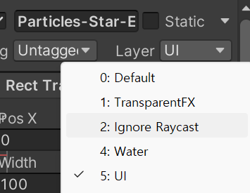이 부분에 의해서 Particle System 을 통해서 불러들인 프리팹의 랜더 순서가 영향을 받아서 화면에 보여지는 순서가 바뀔 수 있다고 생각하여서 해당 부분을 UI 로 변경해주었다.