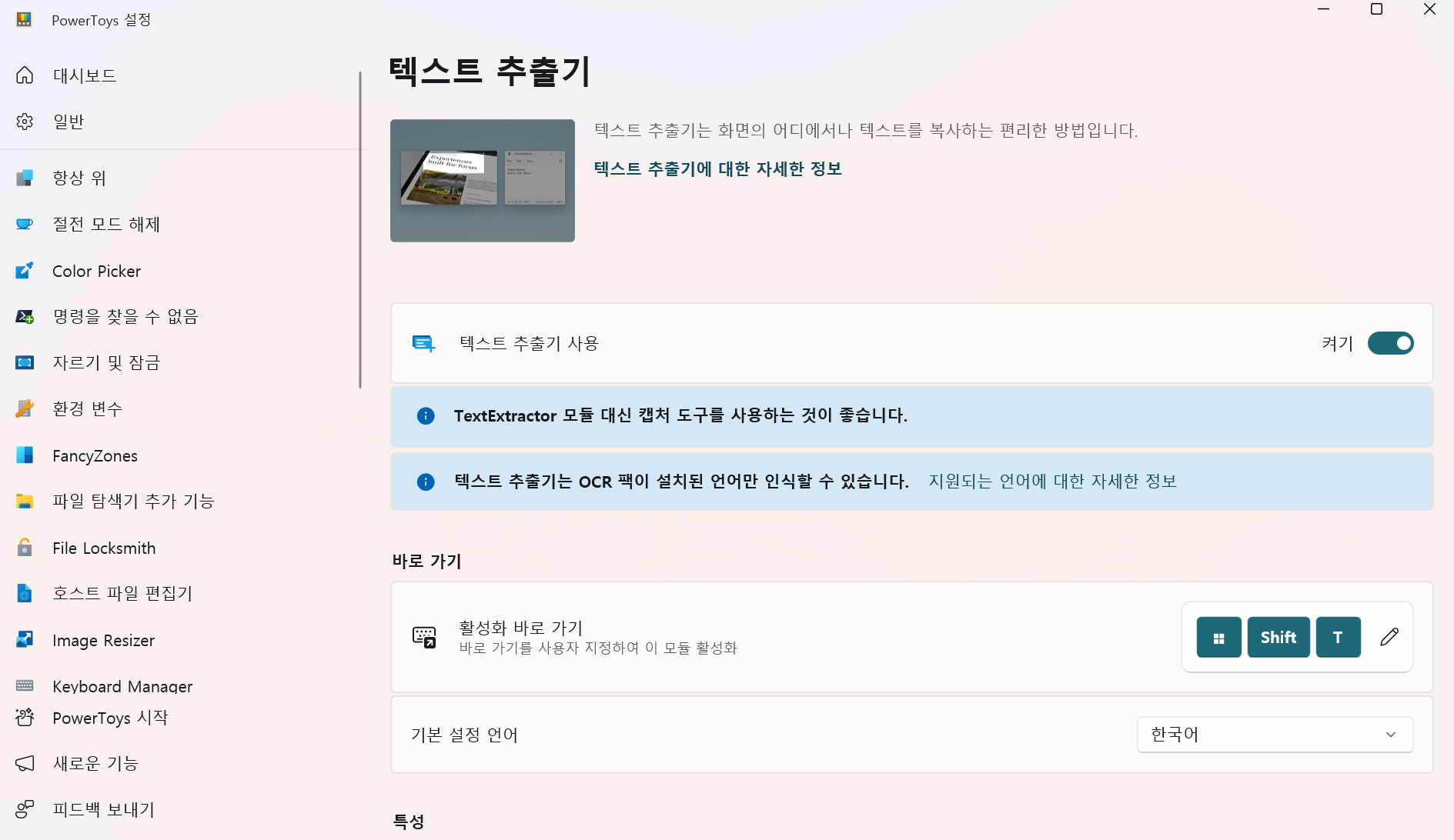 https://learn.microsoft.com/ko-kr/windows/powertoys/text-extractor#supported-languages