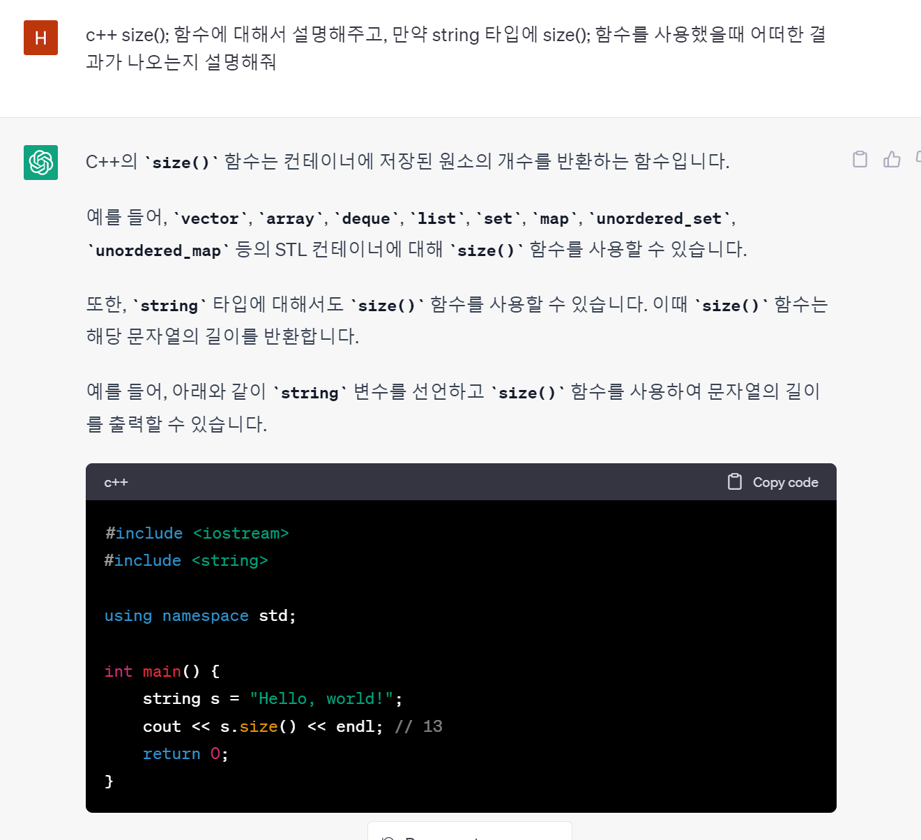 위와 같은 내용은 gpt상에 물어본 size()함수에 대한 내용이다.
